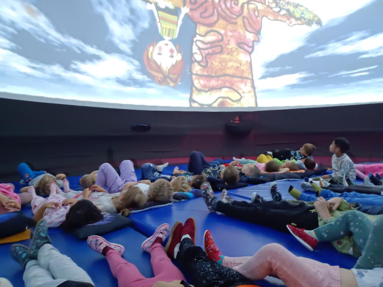 Nabídlo nám unikátní zážitek s nejmodernější technologií promítací kopule. Tentokrát v představení filmu: Holčička, která chodila vzhůru nohama. Příběh vypráví o zvláštní dívce, která sestoupila z duhy a chodí po našem světě vzhůru nohama. Potkává přátelé a seznamuje se s různými živočichy. To se nám všem v září nesmírně hodilo, protože i my poznáváme ve svých třídách nové kamarády.