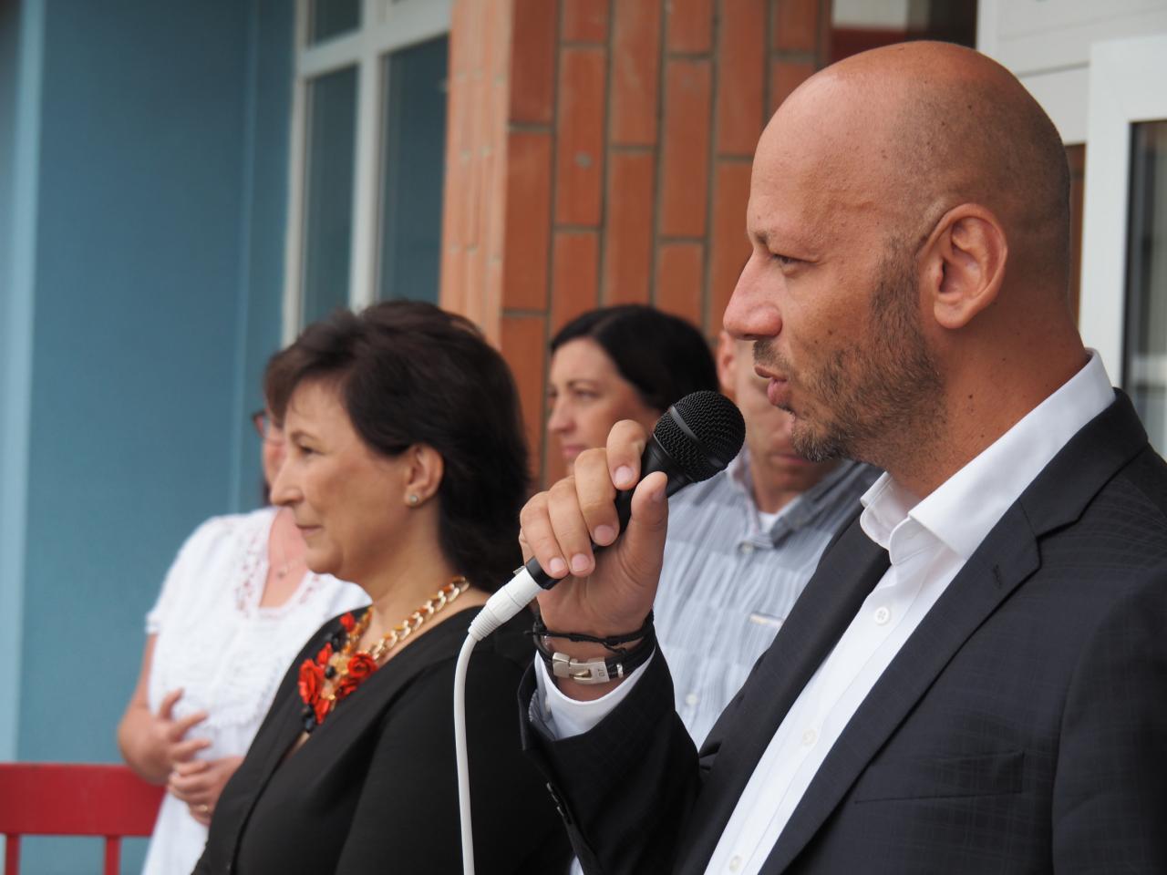 Shromážděné žáky přivítala krátkým proslovem ředitelka školy a starosta městské části Brno-Slatina. Důstojnost aktu umocnila melodie české státní hymny.